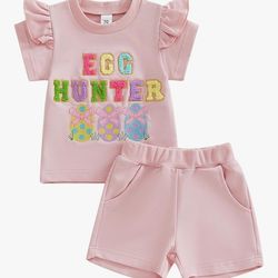 Toddler Girl Happy Easter Outfit Pink Short Sleeve Shirt & Shorts with Matching Bunny Ears Headband$12Alhambra, CA
