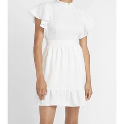 Express X Lady gang White Dress Women’s Size 6 Fit And Flare Ruffle Sleeves And Hem $18Glendora, CA