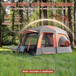 8–10-12 Person Camping Tent, 2 Room Family Tent with Zippered Divider, Porch, Rainfly, Extra Large Waterproof Cabin Tent with 3 Mesh Doors & Windows, $160Claremont, CA