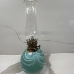 VTG Mt. St. Helens Ash Hand Blown Hurricane Oil Lamp Iridescent Blue White Swirl$25Whittier, CA