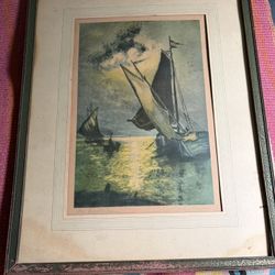 Antique French Maritime Print “An Evening Breeze” Henri Chabane Framed c1900$75City Of Industry, CA