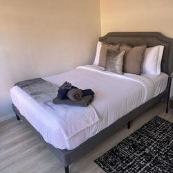 Cal King Bed Frame + Mattress – Modern Upholstered – Excellent Condition$500Monrovia, CA