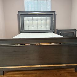 Grey Wooden Queen Bed Frame w/ LED Headboard$200Los Angeles, CA