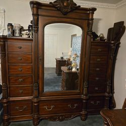 Like New Ornate Solid Wood King Bedroom Set - Armoire, Dresser, Nightstands - Originally $8,000+$4,000Chino, CA