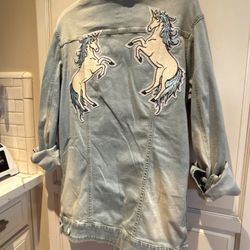 LuLaRoe Light Blue Jacket size XL with unicorn appliqué patches sewn in$25Pasadena, CA