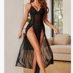 New xl black sheer floral dress nightgown lingerie Teddy long embroidered$20Mount Baldy, CA