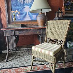 Antique Wicker Rattan Bookcase Writing Desk / Vanity & Chair$285Anaheim, CA