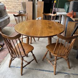Vintage Solid Maple Dining Table Set – 2 Leaves + 4 Chairs + Card Table Topper $525Los Angeles, CA