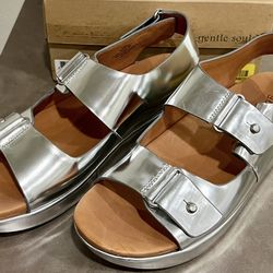 🌸NEW Gentle Souls Silver Metallic 9M Comfort Leather Wedge Sandals Women’s JAHZARA$60Los Angeles, CA