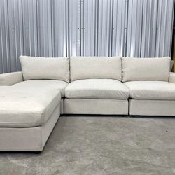 NEW Ivory Fabric Sectional Sofa and Ottoman Set Ashley Style Couch BIG SALE Cream White Beige Discount Furniture Warehouse Clearance Designer Choice!$479Upland, CA