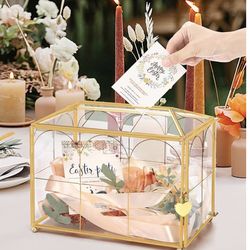 Gold Small 9.8" x 5.6" x 7.7" Glass Wedding Card Box with Slot and Lock, Geometric Card Holder$25Arcadia, CA