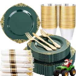 175PCS Green Plastic Plates - Disposable Green Gold Party Plates & Pre Rolled Napkins with Cutlery for 25 Guests, 50Plates, 75Silverware, 25Cups, 25Na$45Torrance, CA