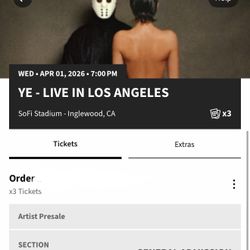 KANYE WEST TICKETS FOR 4/1/2026$500Huntington Park, CA