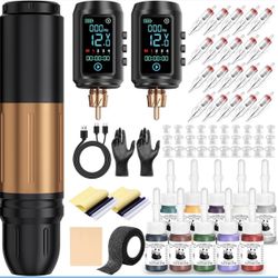 Tattoo Gun Kit Wireless Tattoo Machine Pen Kit with 2Pcs 1600mAh Replaceable battery and 20 pcs Tattoo Cartridge Needles, 10 Ink Colors $50Westminster, CA
