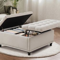 E-35.5" Large Square Storage Ottoman, Lift Top Ottoman Square Bench with Storage, Tufted Upholstered Ottomans, Ottomans Coffee Tables for Living Room,$100Ontario, CA