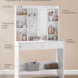 Vanity Desk with Mirror and Lights, Makeup Vanity with Upholstered Vanity Stool, Dimmable LED Lights, Adjustable Shelves, 7 Compartments, 2 Drawers, f$125Ontario, CA