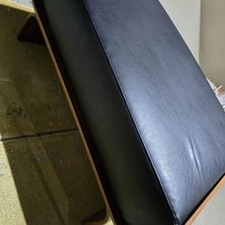Mid Century Ottoman Solid Wood And Black Leather Cusion Ottoman$200Hermosa Beach, CA