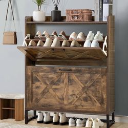 Shoe Cabinet with 2 Flip Drawers Farmhouse Freestanding Shoe Storage Cabinet for Entryway, Hidden Shoes Rack Cabinets for Entryway with Metal Legs, Ru$55Rosemead, CA