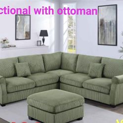 ✅️✅️3 pc smoke grey wide welt corduroy fabric sectional sofa with USB plugs square arms with chaise and storage ottoman✅️$498Long Beach, CA