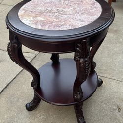 Beautiful Carved Wood Side Table with Marble Top - 22x28 $145Long Beach, CA