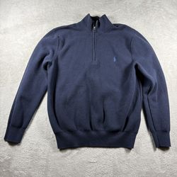 Polo Ralph Lauren Sweater Pullover Mens L Blue Mesh Knit Quarter Zip Cotton#1618$35Long Beach, CA
