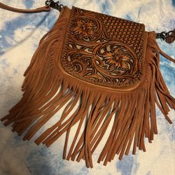 Montana West Genuine Leather Floral Tooled Fringe Crossbody $25Rosemead, CA