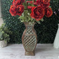 Like New Vintage Bombay Heavy Metal Iron Vase with Red Faux Rose 17" Tall Decor Flower Arrangement $25Irvine, CA
