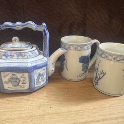Vintage Chinese Blue & White Porcelain Teapot Kettle and 2 cups$35Downey, CA