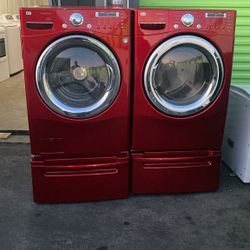 LG RED EXTRA LARGE FRONT LOAD WASHER AND GAS DRYER SET WITH PEDESTAL $650Yorba Linda, CA