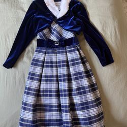 Jona Michelle Girls Blue Plaid Holiday Dress & Velvet Shrug Set: Size 6$10Monterey Park, CA