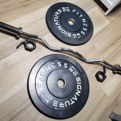 Curl Bar With Weights Olimpic Bumper $60San Pedro, CA