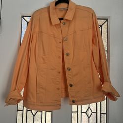 CHICO'S Denim Trucker Jacket Size Orange Stretch Long Sleeves Pockets 2 = L/T3 Almost new For $30Chino Hills, CA