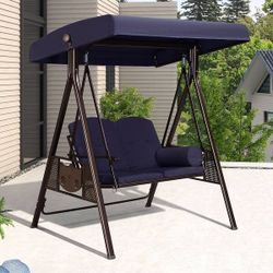 2 Person Porch Swing with Stand, Outdoor Swing with Canopy, Pivot Storage Table, 2 Cup Holders, Cushions for Patio, Backyard, Dark Blue$120Rosemead, CA