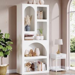 Tribesigns Bookshelf, Round Etagere Bookcase, 63-Inch Industrial Wood Bookshelf with Tiered Shelves, Rustic Open Bookshelf Organizer Rack Brand New st$85Diamond Bar, CA