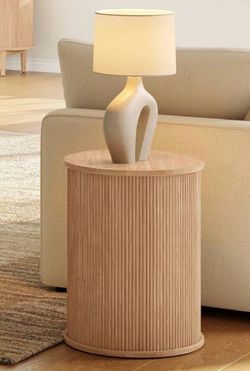 End Table, Narrow Side Table with 3-Tier Storage Shelves, Wood Sofa Side Table with Geometric Metal Frame for Living Room, Industrial Bedside Nightsta$50Rosemead, CA