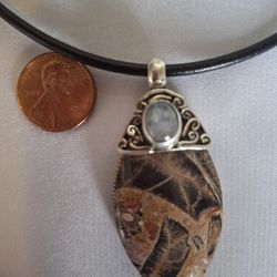 Artisanal Habdmade Gemstone Necklace Leather Cord, .950 Silver Detail$60Long Beach, CA