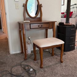 Vanity With Mirror Jewelry Cabinet / Mirror Jewelry Vanity Organizer, Jewelry Storage Cabinet with 1 Drawers And Small Stool$50Rancho Cucamonga, CA