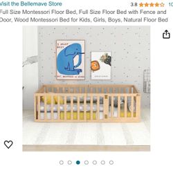 Full Size Montessori Floor Bed, Full Size Floor Bed with Fence and Door, Wood Montessori Bed for Kids, Girls, Boys, Natural Floor Bed$200Pinole, CA