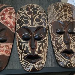 Set of (3) Wooden Handcarved 12" Tall Tiki Masks Wall Decor$25Vacaville, CA