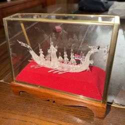 Vintage Hand Blown Glass Dragon Boat Glass Case Thailand 1950s oars flag spires lantern$60Vacaville, CA