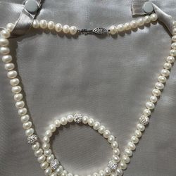 Pearl Diamond Accent Necklace And Bracelet Set $300Stockton, CA