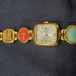 Kenneth Jay Lane, 18k Gold Plated. Carved Scarab Stone Bracelet Watch $55Concord, California