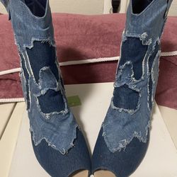Chic Denim Peep-Toe Heeled Boots$50Stockton, CA