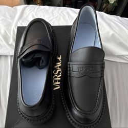 Versace Adriano Logo-Embossed Black Leather Loafers Men Sz 45 (US 12) Authentic$250Hercules, CA