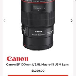 Canon 100mm Macro Lens. EFS $600Arrowhed Farm, CA
