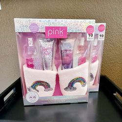 Pink Viva 10 Piece Bath Set, Body Lotion, Hand Lotion, Nail Polish, Nail Gem, Nail File, Slippers