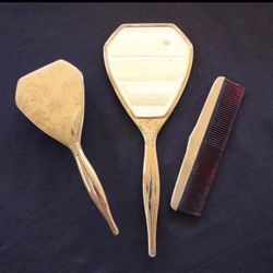 Gold & Red 1930’s-40’s hand mirror brush and comb$90Victorville, CA