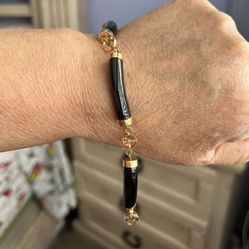 LIKE NEW 14K Gold Guarantee Genuine Black Onix Stones 7/8” ( Good Luck 🍀) Bracelet SALE. $580. O.B.O 🍀$590Rialto, CA