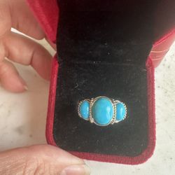 925 Sterling Silver W/gold Designs Between Each Genuine Oval Turquoise Stone Ring , Size 10 , Designer Michele Albala, Hallmarked In Photos $38Victorville, CA