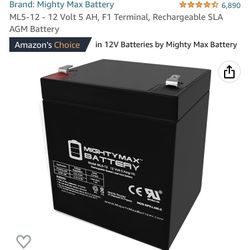ML5-12 - 12 Volt 5 AH, F1 Terminal, Rechargeable SLA AGM Battery$15Fontana, CA